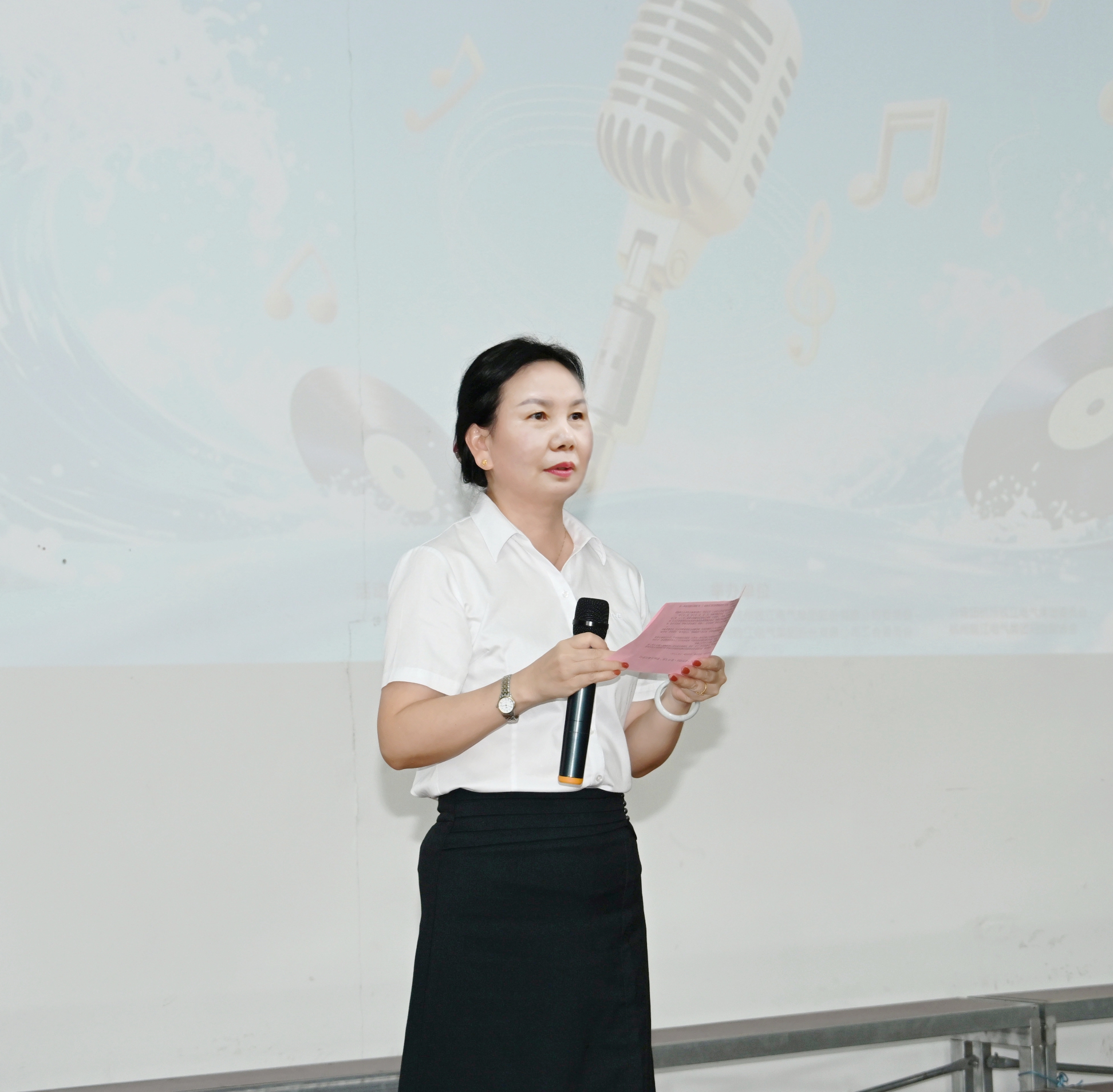 比赛正式开始前,蒋荣莉详细宣读了比赛规则,本次比赛分为团队合唱和个人独唱两个组别,选手们按照抽签顺序依次登台演唱,评委团则依据演唱技巧、舞台表现等标准进行公正打分。